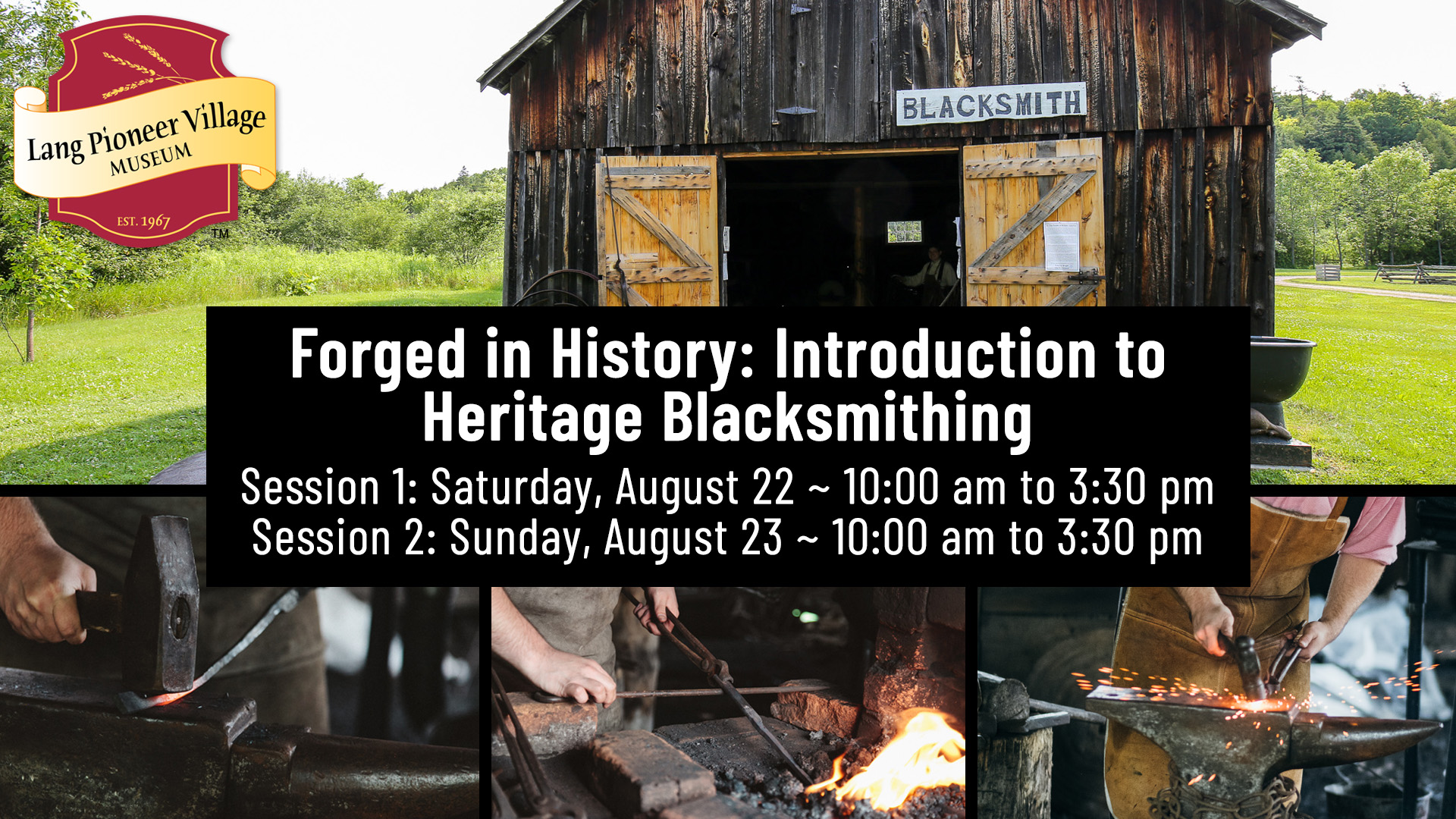 Spend a day in Lang Pioneer Village’s historic Blacksmith Shop and discover the basics of traditional blacksmithing. In this hands-on introductory workshop, participants will work with heritage tools and equipment under the guidance of an experienced heritage blacksmith. You’ll learn fundamental forging techniques and create your own fire poker to take home. No prior experience is required. This unique experience offers a chance to connect with living history while learning an essential pioneer craft. Please note this course requires steel toed boots to participate. Advance registration is required.