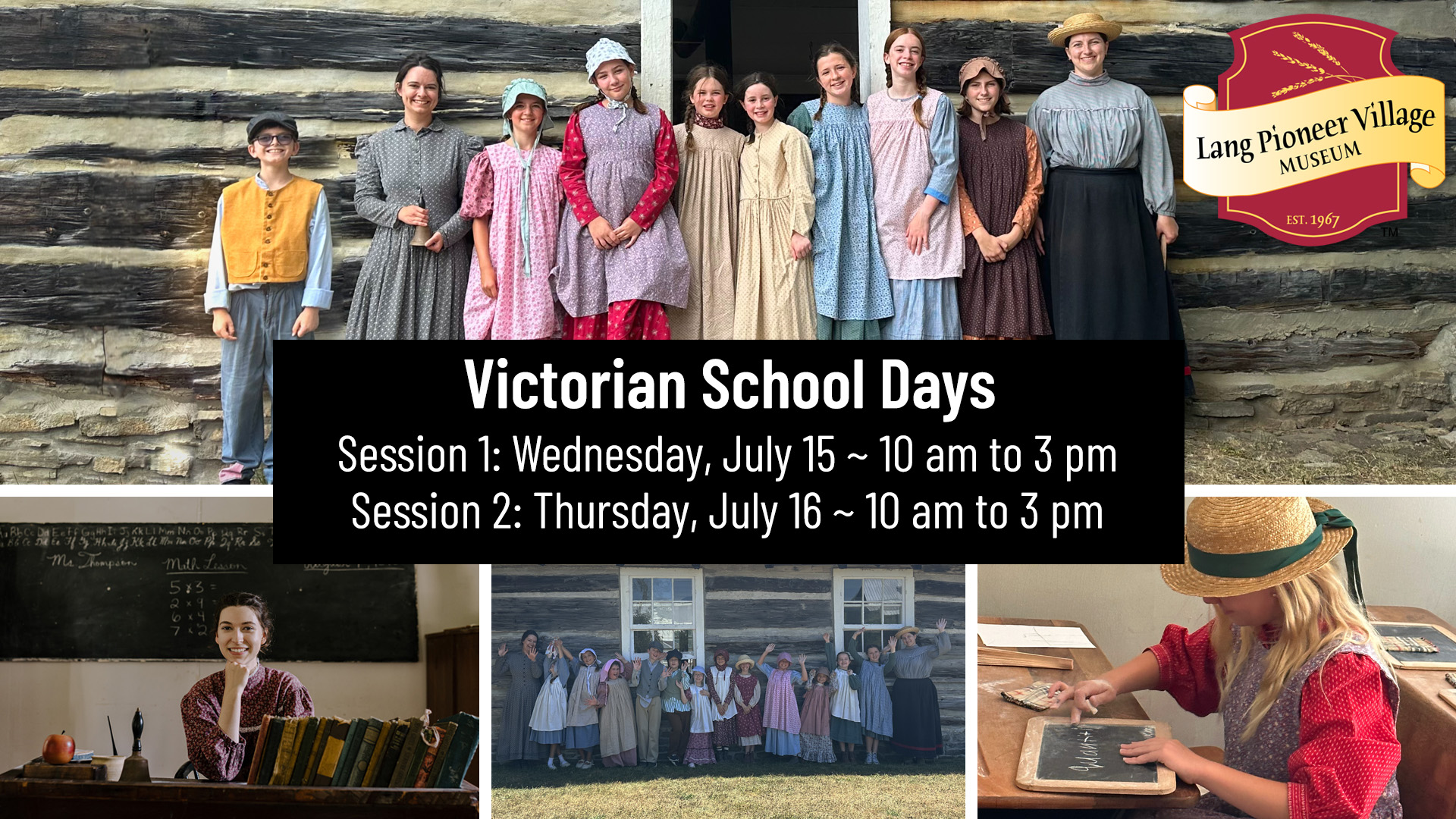 Youths ages 8 to 12 years old can enjoy an immersive experience of life as a Victorian student in a one-room school. During this day-long program, each participant will be outfitted in authentic attire and learn the proper etiquette for youth of the time. The day will consist of authentic lessons taught by our schoolteacher who will navigate you through your day. Participants are required to bring a bagged lunch & wear black/brown boots. Advance registration is required.